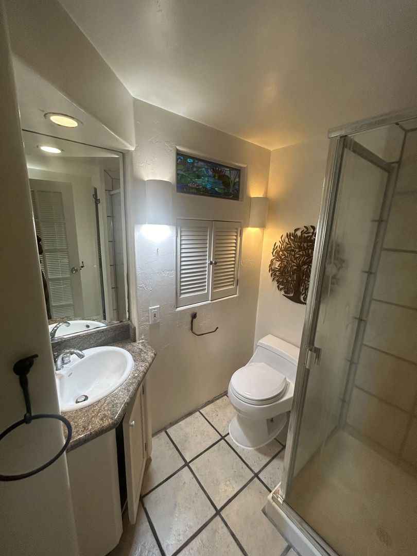 -Private studio setup with full bathroom