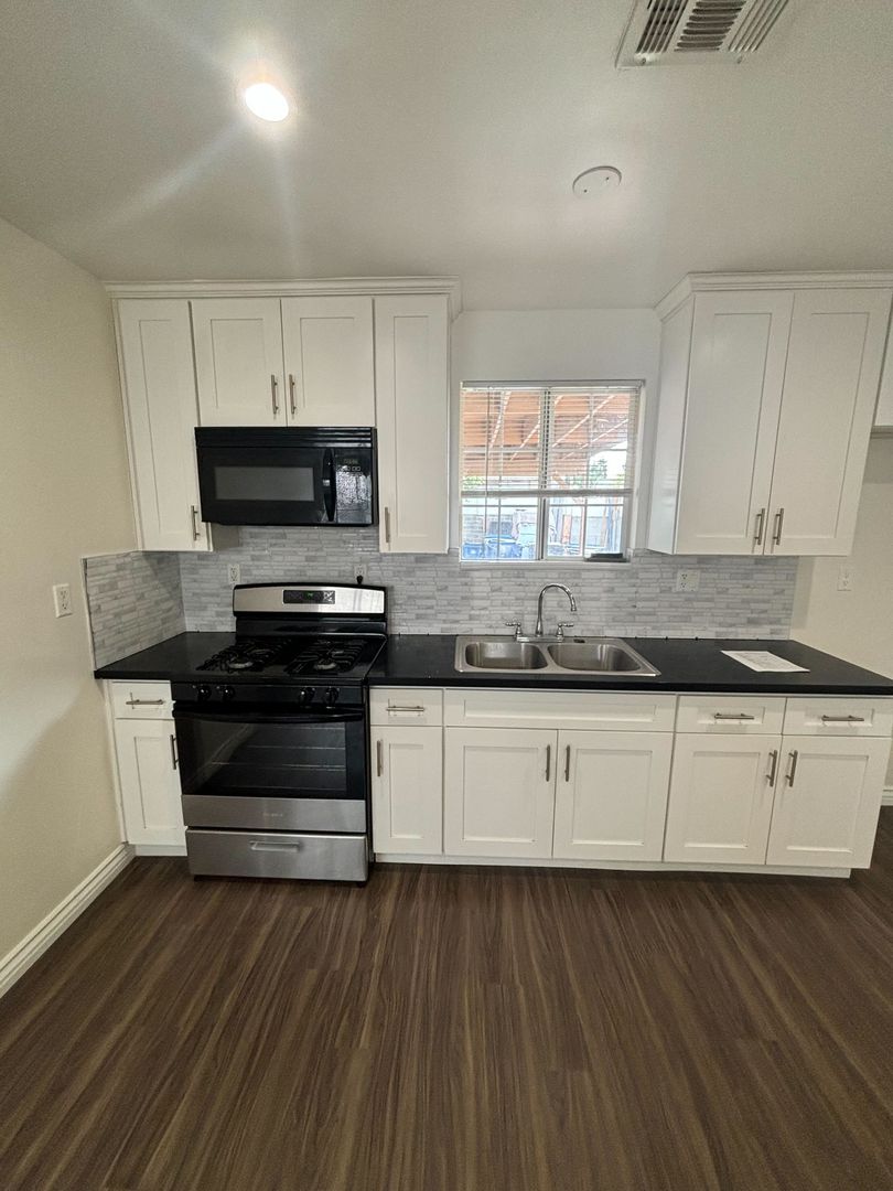 ***Kitchen equipped with stove, oven, and microwave