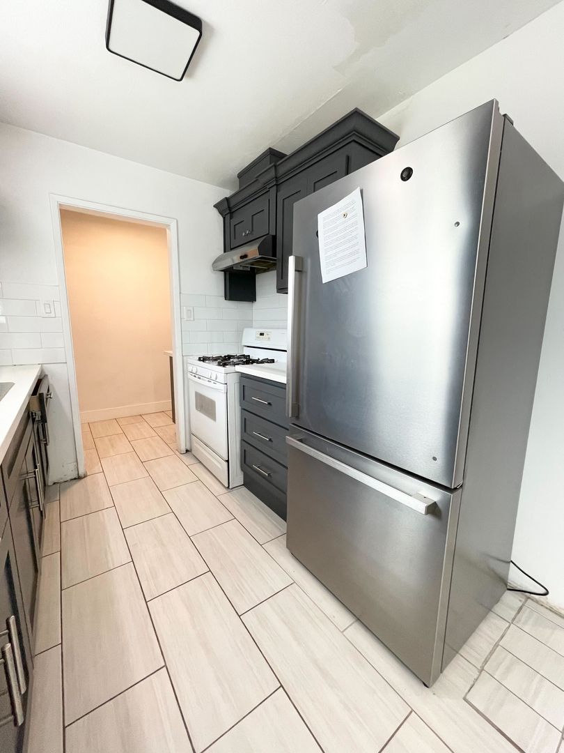 ***Kitchen equipped with refrigerator, stove, and oven